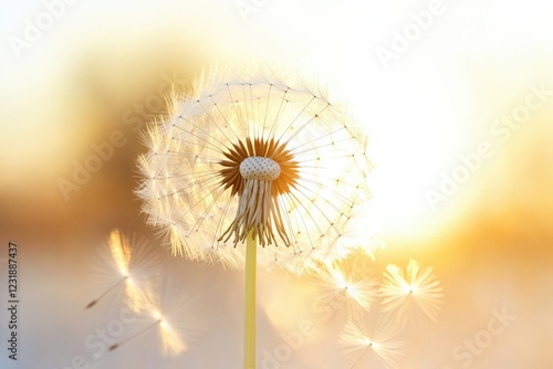 A dandelion with seeds dispersing in the air, a symbol of freedom and new beginnings