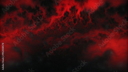 A dark, abstract image showcases irregular patches of deep red and black, blending together in a fluid, organic manner.