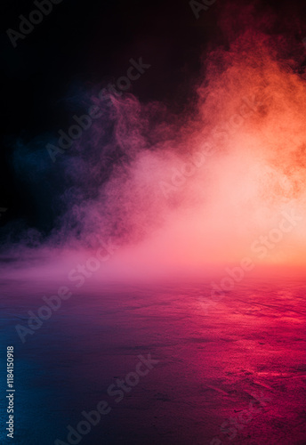 A dark background sets the stage for an atmospheric stock photo, featuring an empty floor wrapped in luminous pink and coral mist, creating a lively and cheerful vibe.