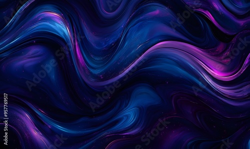 A dark background with swirling dark blue and purple liquids, Generative AI