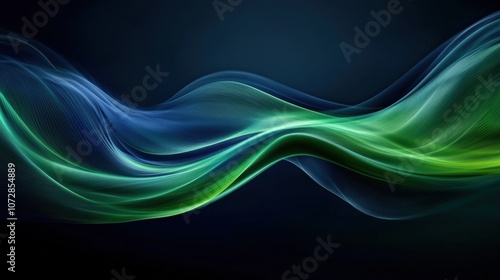 A dark blue and green abstract ocean wave, with curling shapes and smooth texture creating a fluid and tranquil feel.