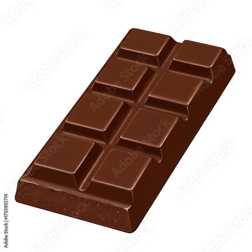 A dark chocolate bar, segmented into eight equal pieces, isolated on a white background.