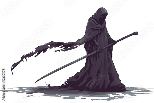 A dark, cloaked figure wielding a scythe, symbolizing death or the passage of time.