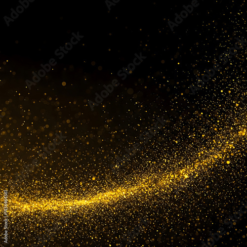 A dark, elegant background with a flowing stream of sparkling golden particles