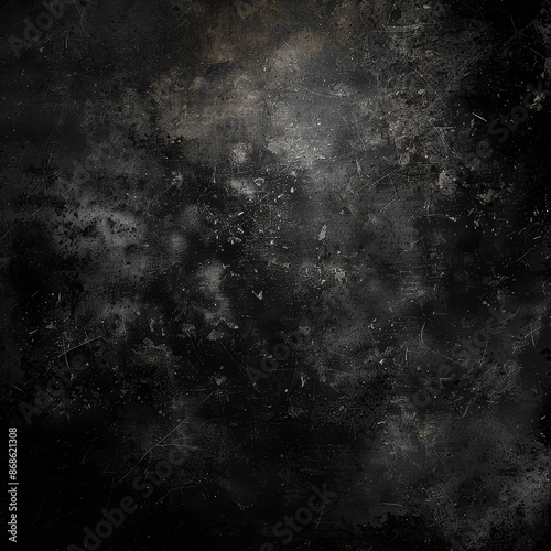A dark grunge background texture for design, featuring rough and worn textures with subtle hints of light in the corners. It's perfect as an overlay or for creating urbanstyle designs. The black color