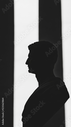 A dark landscape depicting the ruins of ancient Greek society, deeply connected to Stoicism, with a single large statue of a Roman emperor.