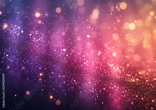 A dark purple and pink gradient background with shimmering glitter and glowing bokeh lights, evoking a magical, celestial ambiance perfect for creative designs.