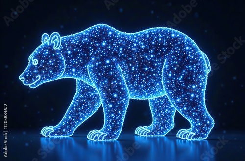 A dazzling digital bear formed by sparkling blue stars and illuminated particles