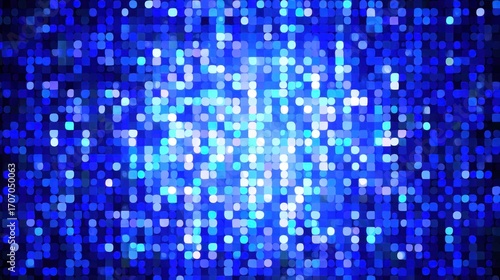 A dazzling display of shimmering blue pixels, creating a bright, textured effect against a dark background, evoking a sense of modern technology