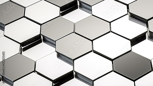 A decorative pattern with beautiful futuristic metallic hexagonal shapes. (Generative AI)