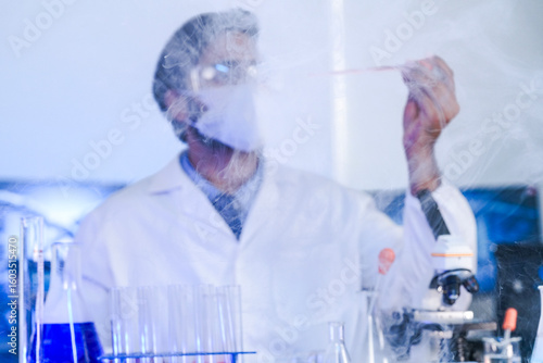 A dedicated Indian researcher analyzes a biological sample in a lab, contributing to medical breakthroughs and advancements in healthcare. Concept for diagnostics and treatment.