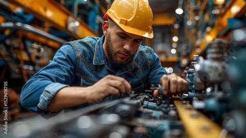 A dedicated technician meticulously examines and repairs machinery in a workshop, exemplifying craftsmanship, skill, and the importance of maintaining technology in our daily lives.
