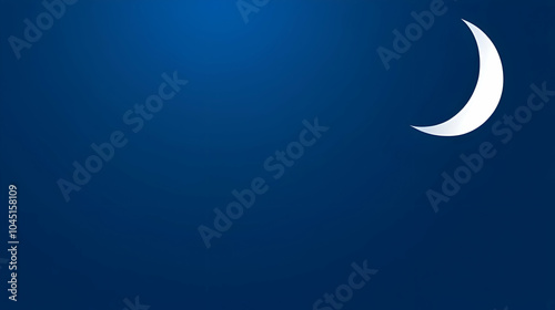 A deep blue background with negative space, showing only a white crescent moon placed in the upper right corner, casting a soft glow