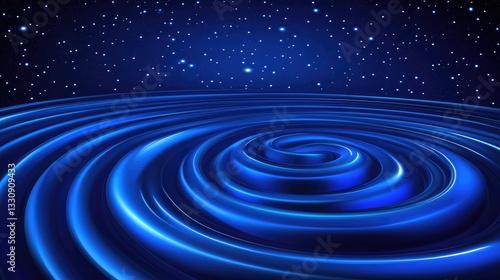 A deep blue glowing vortex in a starry cosmic scene, radiating a mysterious and futuristic energy.