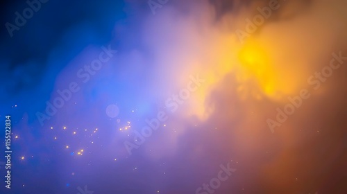 A de-focused abstract background featuring shimmering glitter lights in blue, gold, and black hues.