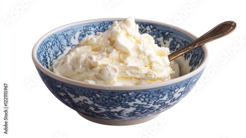 A Delectable Creamy Dessert in a Beautiful Blue and White Bowl