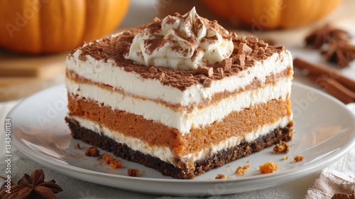 A delectable dessert, a symphony of textures and flavors, featuring a creamy pumpkin spice layer nestled between a moist carrot cake layer, a testament to the joy of autumnal baking.