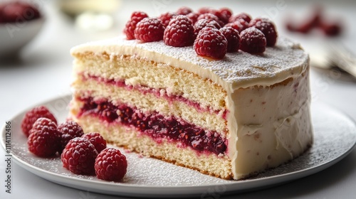 A delectable two-layer cake filled with raspberry jam, topped with velvety frosting and berries