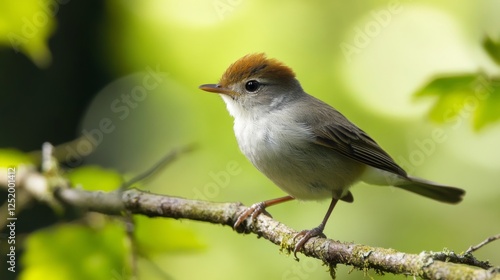 A Delicate Bird Perched on a Branch in Lush Green Forest
