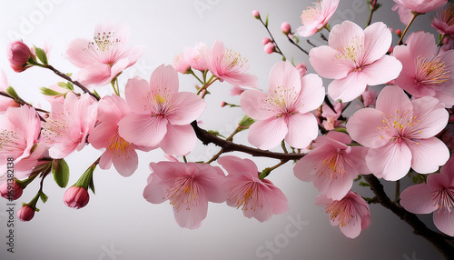 A Delicate Branch Of Pink Cherry Blossoms Against A Light Background Symbolizing Beauty And Renewal