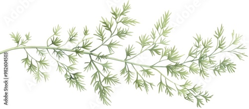 A Delicate Branch With Green Aromatic Leaves Of A Garden Herb Plant Dill Used In European Kitchen Cooking Used To Flavor Many Foods Like Salads Isolated On White