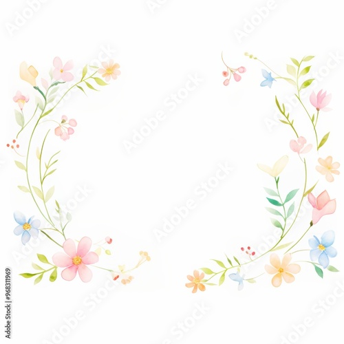 A delicate floral border featuring soft pastel flowers and greenery, perfect for invitations or graphic designs.