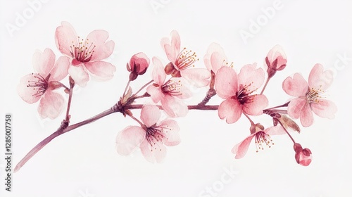 A delicate watercolor depiction of cherry blossom branches in soft pink hues.