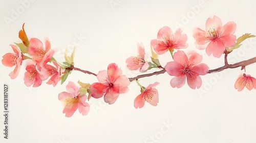 A delicate watercolor illustration of cherry blossoms on a branch.