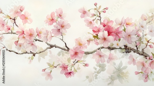A delicate watercolor illustration of cherry blossoms on a branch, evoking tranquility.