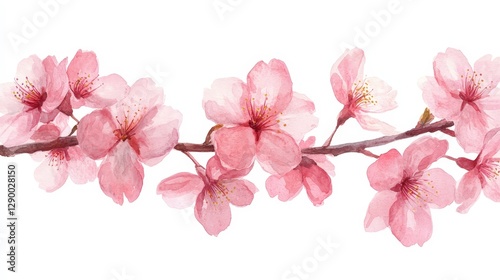 A delicate watercolor illustration of pink cherry blossoms on a branch.