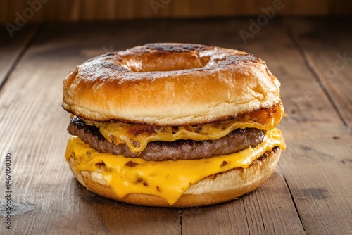A delicious cheeseburger with fresh lettuce and a ripe tomato. placed on a rustic wooden table. showcasing a simple yet appetizing meal setting perfect for food photography