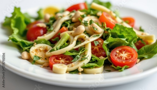 a delicious salad set against a clean white background, presented with clarity through a clear composition and high resolution.