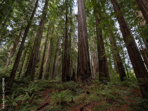 A dense grove of coastal redwoods in California.