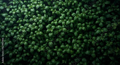 A dense patch of small green leaves covering the ground with a dark and lush appearance in nature light