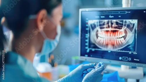 A dentist examining a digital dental impression, highlighting the use of technology in modern dentistry.