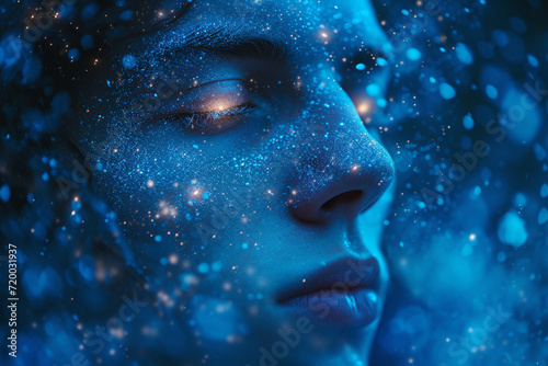 A depiction of the pineal gland releasing melatonin, using starry, nocturnal imagery and cool tones,