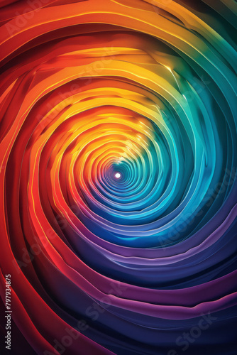 A design featuring spiraling stripes in rainbow colors, creating a mesmerizing optical illusion,