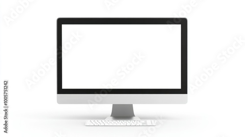 A desktop computer showing a blank white screen on a clean white background, minimalistic and perfect for website or UI design presentations.