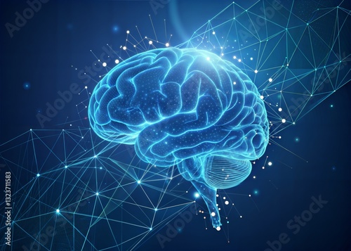 A detailed 3D rendering of a human brain with interconnected neural network.