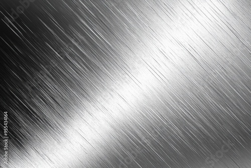 A detailed close-up of a brushed metal surface with a shiny, reflective finish, showcasing the linear texture of the material.
