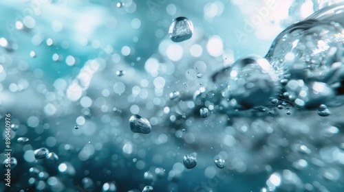 A detailed close-up of air bubbles captured underwater mid-motion, with sharp focus on the bubbles, highlighting the intricate play of light and water in a visually captivating scene.