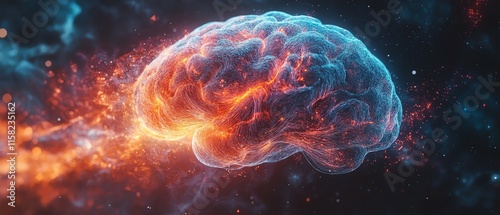 A detailed closeup of an abstract brain made of flowing ribbons of light