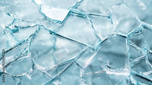 A detailed close-up of shattered glass pieces portrays the intricate patterns and light interactions, evoking feelings of chaos and the beauty that can emerge from destruction.