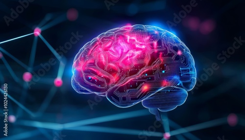 A detailed close-up of the brains synapses, blending into complex electronic circuits, symbolizing the connection between human cognition and artificial intelligence.