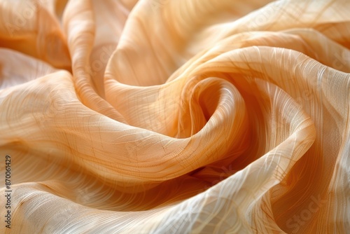 A detailed close-up photograph of elegantly draped, light orange fabric with intricate patterns and a delicate, smooth texture that exudes a sense of luxury and sophistication