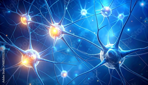 A detailed depiction of neurons forming a complex network within the brain, glowing