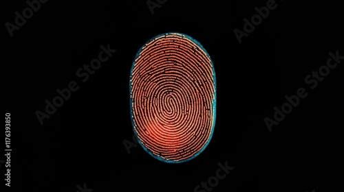A detailed fingerprint displayed against a black background, showcasing intricate patterns and unique ridges.
