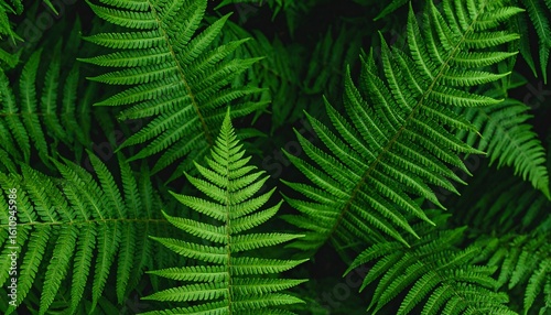A detailed high-resolution close-up of fresh green fern leaves creating a natural, textured pattern on a dark background.