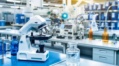 A detailed laboratory environment, with microscope and other equipment for scientific research