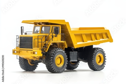 A detailed model of a yellow dump truck designed for construction and transportation tasks.